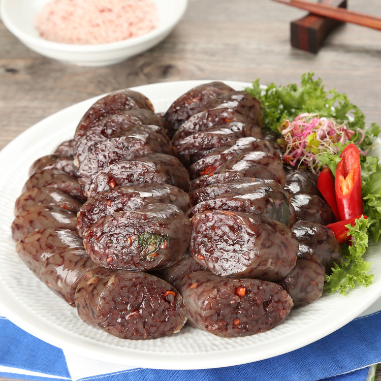 건면[당면{고구마전분,타피오카전분(보존료(이산화황)함유),황산알루미늄칼륨}중국산],정제수,돈소창(국내산),돈선지(국내산),돈지방,복합조미식품(순대양념분말 S-2),당근,마늘,찐찹쌀,생강,깻잎